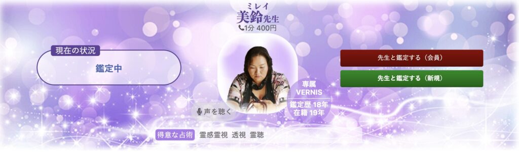 鑑定歴18年の美鈴先生は、将来の方向性やキャリアに悩む人から「的確で心強い」と高く評価されている占い師です。