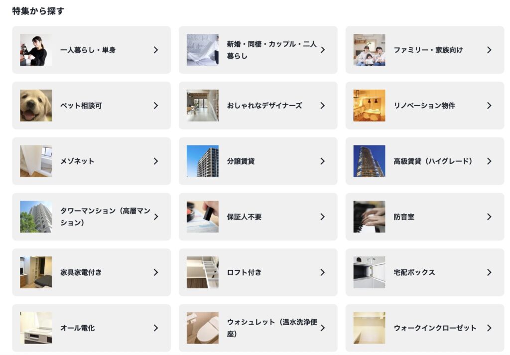 細かく検索できるほど、理想の部屋に出会いやすくなるから、住みたい地域が決まってる人ならとくに使いやすいよ。